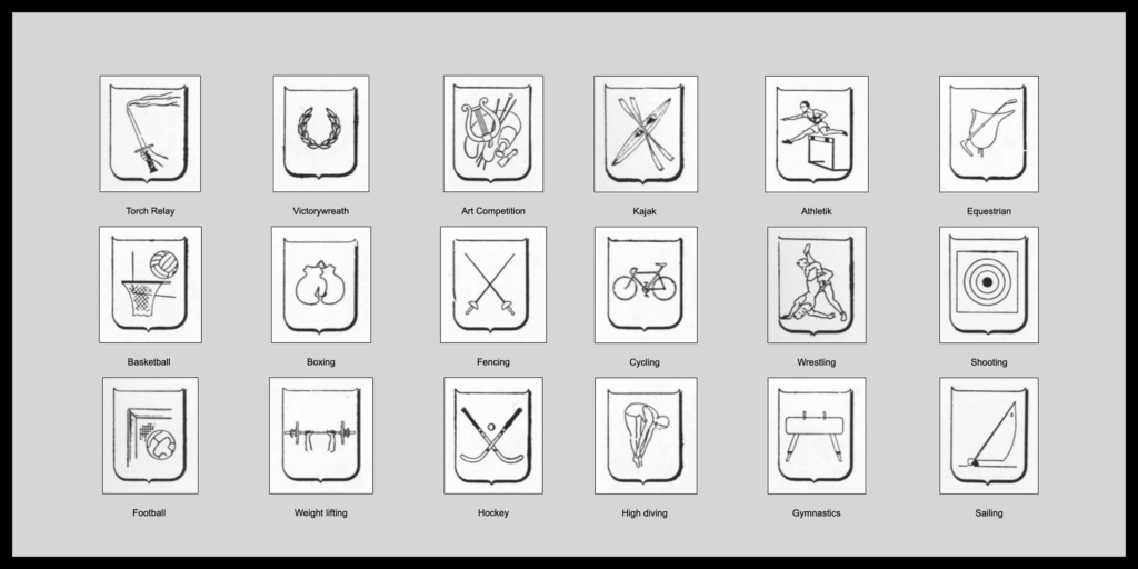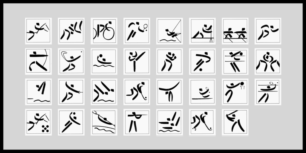 Olympic Games in Paris 1924, London 1948, Helsinki 1952 or Rome 1960, had families of drawings very similar to pictograms, but without the synthetic rigor or practical background of these were illustrations that mainly decorated printed materials, such as programs, brochures or tickets.