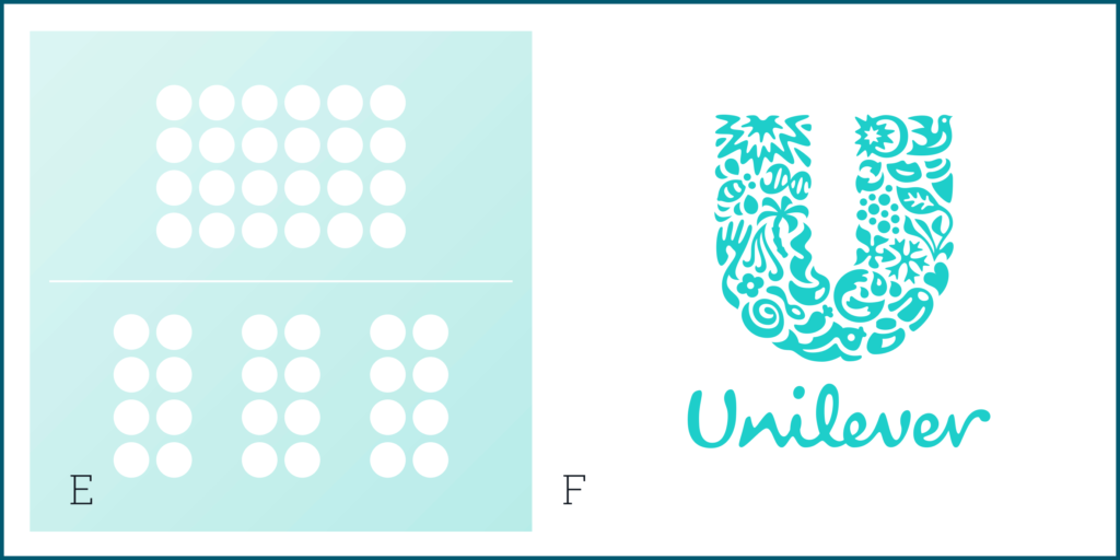 (F). in the Unilever logo, we can clearly see a set of twenty-five elements independent; likewise together with each other, it can be seen that they perfectly form the letter U.